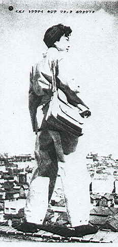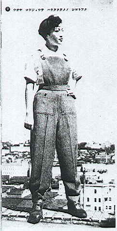 「ハラタクタメノ」と、いきなり誤植が発見されてしまった。もちろん「ハタラクタメノ」が正しい。後年の<ヘビーデューティー>(死語)を先取りした感がある。くっきりとしたスボンの折り目が<労働>を感じさせない。小粋にちぢれた前髪もなかなか<非国民>している。靴も上等そうだ。