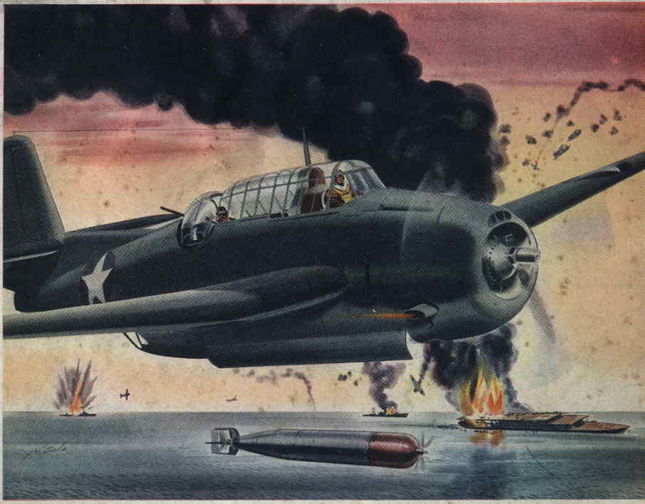 「AIR NEWS」と云う雑誌(これが米国雑誌史で、どのような位置付けにあるのかは、知りません)の、1943年9月15日号の裏表紙である。米海軍の雷撃機「アベンジャー」が魚雷を投下している場面である。