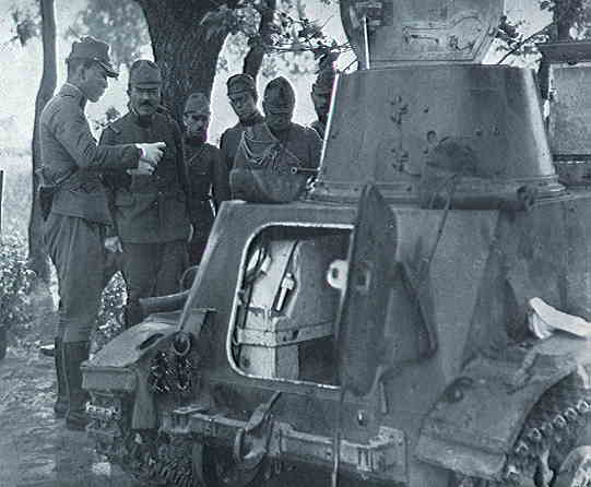 「国際写真新聞」昭和13年6月20日より。掲載の記事での被写体は板垣中将(中央でなんとなくカメラを気にしているヒゲの人)なのだが、軽装甲車の内部が写っているのからここに掲載しているに決まっておる!かつこの写真欲しさにこの本を買ってしまったのだから、他で採り上げられていても、こいつをはずすわけにはいかないのであった(笑)。
