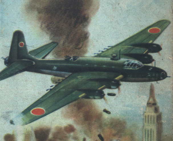 神鷲一たび敵都に羽搏けば 林立する白亜の摩天楼も豪華を誇る建築も埠頭も一瞬にして木っ葉微塵と吹き飛ぶ、