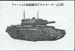 区分 名称 最近の主要戦車 巡航戦車 「マーク」6巡航戦車(「クルセーダー」乙型) 歩兵戦車 「マーク」4歩兵戦車(「チャーチル」3型) (装甲自走砲) 88粍自走砲 従来の主要戦車 軽戦車 「マーク」7軽戦車 巡航戦車 「マーク」5巡航戦車(「コベナンター」)