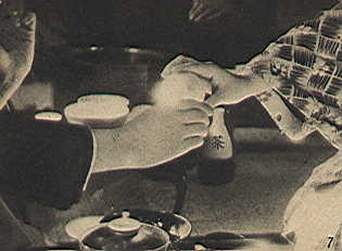 だからと云って、銚子に<茶>と書き入れて持ってくるものなのか? 照明の当て方が、露骨にヤラセっぽいぞ。この時代も飲み屋のお茶は有料だったのだろうか…。