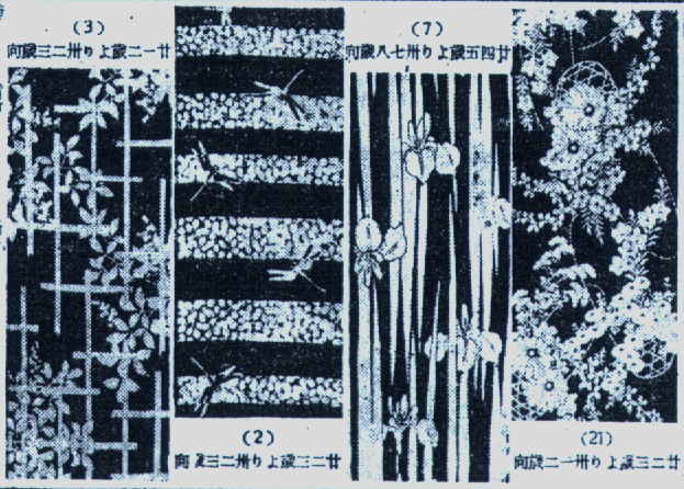 「従来の猟奇的な尖端的な、奇抜な柄が行く所までゆき着いて、早あかれて来た」と前年を回顧、「おとなし向きな草花模様や有職模様(古代模様をならった類のもの)が主」と解説されている。
