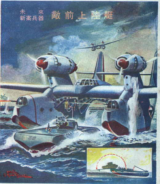 上陸艇を牽引した双胴式飛行艇が敵前の上陸地点に着水すれば、ただちに上陸艇は飛行艇をはなれて、目的を決行するのです。