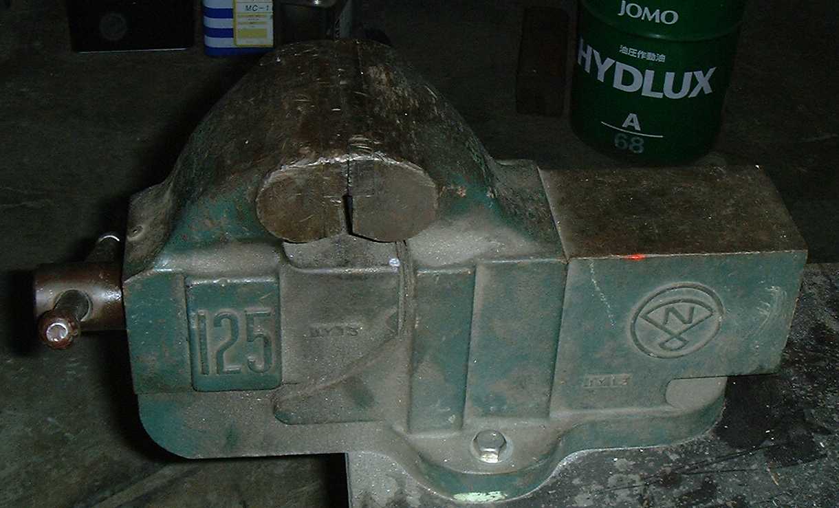 また口金が変形してくると材料を傷めるだけでなく、材料をきちんとくわえられないために材料がずれて思わぬ事故につながります。口金の変形した万力と、可動部分にがたつきの大きな万力は使わないようにしてください。