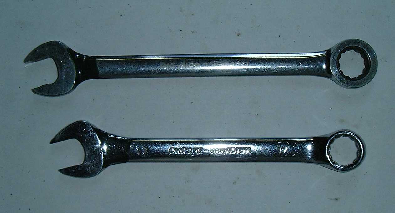 また、粗悪な鋼材の材質のものは力を加えたときに鋼が伸びてスパナの口が広がってしまい、ナットの角をつぶしてしまうことがあります。良いスパナはメッキの厚さまで考慮して口の大きさを決定して作られています。
