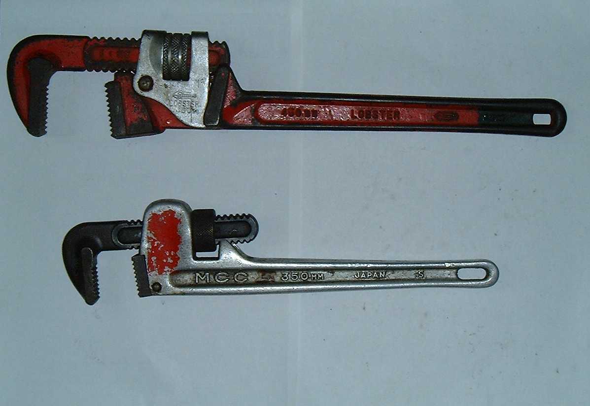 その名のとおりパイプをまわす為の工具ですが、山のつぶれたボルト・ナットも回すことができます。