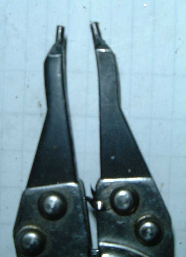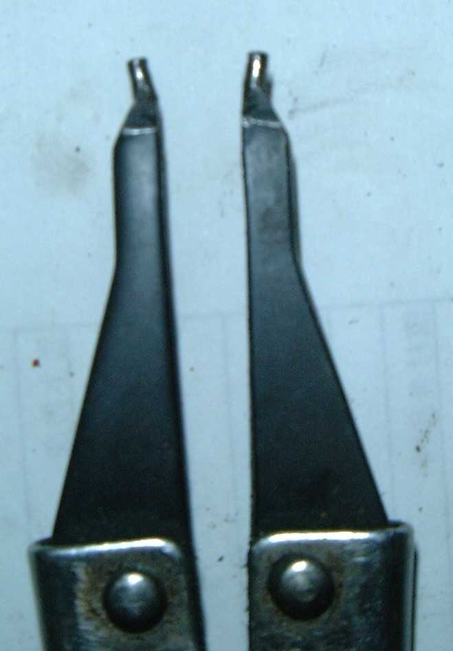 写真は先端部分です。左が穴用、右が軸用です。わずかに角度がつけられていてスナップリングをつかんだ時に外れないようになっています。