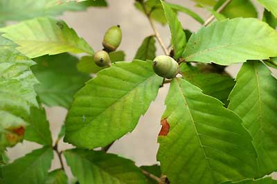 春に花を咲かせたコナラが、小さなドングリを実らせた。
