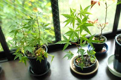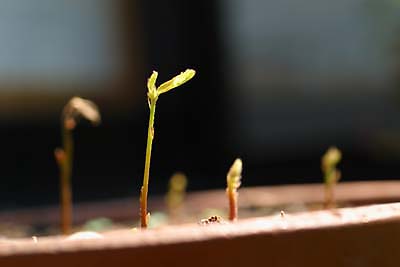 昨年蒔いたアベマキ?のドングリが無事発芽した。