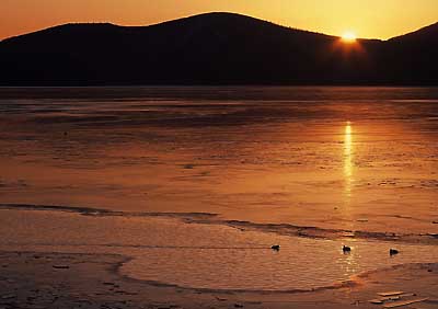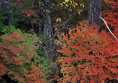 | 広大な風景を狙う場合もポイントの発見が大切だ。著名な写真家の言葉に「写真は引き算だ!」と言う言葉がある。ようするにフレーミング時にポイントを的確に捉え余計な物は画面から排除しシンプルに!と言う事である。 夜空の星を狙う場合は、超高感度フィルムを使用して星を止めて写す方法と、低感度フィルムを使用して夜空に星の光跡を捉える方法がある。撮影時にはレンズが結露するので白金カイロなどでの保温が必要だ。あと、懐中電灯は露出などの確認用に必要です。尚、露出は、データーを記録して後の撮影に役立てましょう。 竜、海、渓流など水の流れを狙う場合、高速シャッターで水の流れを止める方法と、低速シャッターで水の流れを感じされる方法がある。撮影時に悩んだ時は、両方とも撮影する事をお奨めします。 太陽を狙う場合、カメラの露出計指示通りではアンダーになるのでプラス補正が必要です。必ず段階露光をしましょう。 紅葉の撮影は木の下から俯瞰撮影する場合は、プラス補正が必要です。赤い葉をより強調刷り場合は、幾分アンダーに捉えると良いでしょう。尚、葉の表面反射を抑える為にPLフィルターを使用します。 |