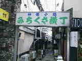 | このような石畳の路地があちこちに伸びています。うっかりすると迷子になりそうなところです。 | いまでも一歩奥に入るとこのような黒塀の料亭があります。いかにも芸者さんの着物が映えそうですね。 | なにやら怪しげな雰囲気を漂わせている横丁。 | 明治の文豪・泉鏡花の「婦系図」に登場する魚屋「めの惣」のモデルとなったのが初代のご主人と言われています。 |
