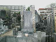 浮世絵師、歌川豊国の墓。上台に大きな字で歌川と刻まれているのがわかりますか。こういうのはあまり見たことがありません。家紋などを彫ってあるのを見たことはあるのですが・・・。 |
