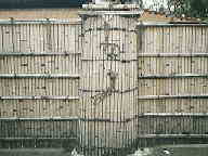 | これが芙美子の墓です。ちょっと小ぶりでつつましやかです。戒名はなく、林芙美子の墓と刻まれています。いかにも彼女らしいですね。 | 上高田3丁目にある、おおきな農家・鈴木家はこの辺りの地主さんだそうです。 | 童謡「たきび」はこの竹垣から生まれました。作詞者の巽聖歌は、この近くに住んでいて、この辺りをよく散歩したそうです。 | 竹垣に珍しい縄飾りを見つけました。よく見ると鶴と亀の模様です。いまでもこのようなことができる職人さんがいるのでしょうか。 |