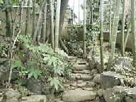 | 4の坂の一角を占める芙美子の家。昭和16年から26年6月に生涯を閉じるまで住んでいました。敷地約500坪の平屋建て。 | 編集者たちが、毎日何人もこの門をくぐったのでしょうね。時には居留守を使うこともあったそうですよ。 | 孟宗竹をうまく配置したこのアプローチは素晴らしいです。 | 放浪の生活を送った芙美子にとって、家とは特別なものでした。細部にいたるまでこだわりを見せています。 |