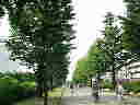 光が丘駅と公園とを結ぶ「ふれあいの径」と呼ばれるいちょう並木。このいちょうは有楽町の旧都庁舎前に街路樹として植えられていたものを移植したもの。40本あるいちょうは樹令100年以上の巨木。 |