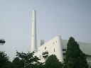 | ネーミングがユニークである。写真ではよくわからないが、全長は6・7メートルくらい。一枚の葉の大きさも大人の背丈ほどある。葉の根元に水分をたくさん含んでいるので、旅人はこの木によって咽の渇きを潤したたそうだ。 | 団地と隣り合わせに建つ清掃工場。白一色のシンプルなデザインは、違和感なくこの町に溶け込んでいるように見える。シンボルの煙突 140m。「電気集塵機」から「ろ過式」に改造した結果、ダイオキシンの減少に成功した。 |