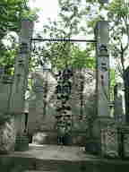 ![]() この寺の歴史は案外新しいのです。建立されたのは明治14年。もともとこの地は永代寺があったところですが、明治維新の廃仏毀釈により永代寺は廃寺になってしまいました。門前仲町という地名も永代寺の門前だったところから来ているそうです。江戸のころよりこの永代寺の境内を借りて、成田山新勝寺の出開帳が行われいました。何だか庇を貸して母屋を取れれたみたいな恰好ですね。境内には歌舞伎の名優、五代目尾上菊五郎[弘化1年(1844)6月生〜明治36年(1903)2月18日没]の碑が立っています。弁天小僧が当たり役だったそうですよ。 |