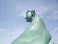 これが展望公園にある芭蕉翁の坐像です。もちろん隅田川の方を向いているのですが、ここから雨の日も風の日も隅田川を眺めて、芭蕉は何を思っているのでしょうか。芭蕉が生まれたのは約370年前です。川畔のながめの変わりように驚いていることでしょうね。ここで一句詠んでみました。「ビルの影 川面に映し 五月来ぬ」下手な句で芭蕉さんごめんなさい。 |