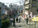 「夕焼けだんだん」と呼ばれる石段が、谷中銀座の入り口。石段があるということは、車は入れないので歩行者の天国であり、安心して買い物が出来る。 |