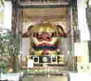 樹齢三千年の黒檜から木造一木造りで高さ2.4m重さ1t日本一のジャンボ獅子頭。年一度の祭礼つきじ獅子祭では数千人の人々に担がれ、築地の町々を回る初夏の風物詩として江戸の名残を伝えている。 |
