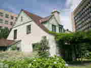 病院の敷地内に建つ、トイスラー・ハウス。かつて創立者のトイスラーが住んでいた家を、新病院建設に際して築地から移設したものである。小さなこのハウスは、慎ましやかでかわいらしく、トイスラーの精神を今に伝えている。 |