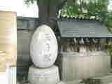神社の境内にはいかにも築地らしい供養碑が並んでいました。 左から「すし塚」「玉子塚」「海老塚」 |