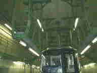 ![]() 春日三球・照代のコンビの地下鉄漫才を思い出してください。どこから電車を運び込むのか考えると「夜も寝られない」というあの名セリフ。ここから搬入するんですって。夜のうちにトレーラーで運ばれてきた車両は、右写真の建物に移され、台車と車体にわけてクレーンで左写真の溝の様に見えるところから下に下ろされます。もちろん下には線路があるわけで、寸分狂い無く合体させるのは至難の技です。難しい作業だけに一日に搬入できるのは、2台だそうです。 |