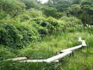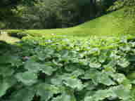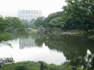 | 梅園のそばの池に配置されています。なかなか風情があっていいでしょう。ここが都会のまんなかであることを忘れてしまいます。 | 「稲田」は農民の苦労を、水戸光圀が彼の子・綱条の夫人に教えようと作った田圃で、現在は毎年、文京区内の小学生が、5月に田植えをし、9月に稲刈りをしています。 | 泉水に面して松の林があり、海辺に見たてたのだと思います。 | 「小廬山」の手前が蓮池。花が終っていたのが残念。小廬山の名はその姿が、中国の名勝地・廬山に似ているところから付けられました。曲線の美しい築山です。 |