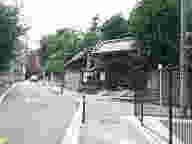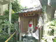 | 「安藤坂」の途中に、「萩の舎」跡のプレートが見えます。かつて樋口一葉が通った中島歌子の歌塾があったところです。今から116年前、一葉はこの坂を、希望に燃えて通ったのでしょうね。 | 安藤坂を「伝通院」に向かう途中にある、「指圧の心母心、押せば命の泉わく」で有名な、浪越徳次郎氏の学校がありました。小さくて見えないでしょうが、中央に「黄金の腕」右側に「銅像」があります。 | 伝通院手前左側にある 現在は幼稚園の敷地内にあるので入ることは出来ませんでしたが、江戸時代は商売繁盛の神様として賑わったそうです。鎌倉時代の大黒天坐像が安置されています。 |