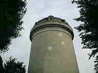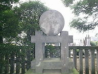 これが円了の墓石。ユニークですよね。ご本人の発案だそうです。 | 江古田のシンボルである配水塔。近代上水道の父と言われている中島鋭冶博士の設計。 | 「哲学堂公園」の入り口「哲理の門」 別名、妖怪門。両サイドに幽霊と天狗が住んでいます。 |