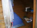 (ここが今夜の宿) (バンガローの中にテント)