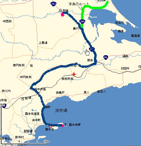 ここで重大な方針変更を決めた。当初の計画ではここからは標津、斜里、網走と出て内陸部から苫小牧に戻るのだが、今までに@2泊余分に使ってしまったことAこの先のコースを眺めてあまりの長さに改めてたじろいでしまったのだ。つまり少し腰が引けてきたのだ。