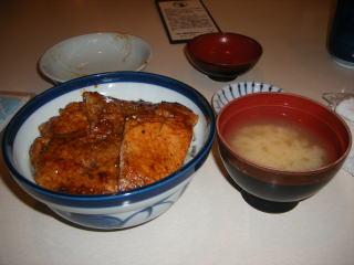 駅前の食堂「ふじもり」で名物豚丼の昼食(美味かった)