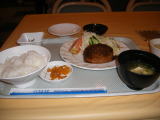 | 6時には乗船後買っておいた食券で(つまり売れた食券の数しか作らない)ハンバーグ定食を食べた。 850円。(下の写真) |
