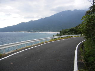 | 5:30 起床 7:45 「やまちょん」出発 今日の目的地は特に決めていない。 ただ走り始めて、直ぐ「西部林道」といって世界遺産指定 地区に入っている道路を走る。強いて言えばこれが今日のメインイベントだ。 ここは以前義父・母夫妻、家人とタクシーで逆方向を走った事がある。その時の記憶では、崖上 の細い道で、木の枝をこすりながら通り、大型車は通らせない道だということだった。 走り始めると直ぐに登り道となる。いつもながら、天気の良い日の朝一番の走りは爽快だ。まだ パワーも十分だし登りも苦にならない。西部林道に入って間もなく、右手に灯台が見えてくる。 永田岬にある屋久島灯台だ。ここも以前寄った所だ。右折してアップダウンを繰り返す尾根道 を2q程行くと、岬の突端に灯台がある。地形の関係か風が強く、カメラの三脚が不安定なので 崖下に落ちはしないかとビクビクしながら記念写真を撮る。もちろん他には誰もいない。ここまで 約6q。 |