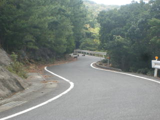 8:45 灯台を出発。 この林道は崖の中腹を削って造られている。恐らく全く何も無かった所に新たに造成したの だろうから、もっとフラットに造ってくれれば良かったのに…、と恨み事のひとつも言いたくなる ほどアップダウンが多い。 小さな岬をいくつもかわして進むのだが、先ず、岬の突端を目指して切り上がり(その間は日陰) 登りつめると、パっと明るく視界が開け海も広がり、(大抵そこで一服)、しばらくは陽光の中を ほぼ下り、また右手前方に岬が見えてくると登りが始まる。そんな繰り返しだ。 まあ、それも楽しいのだけれど。 特に、日陰の登り道には鹿、猿がやたらと多い。いちいち感激などしてはいられない。反って 邪魔になるくらいだ。しかも2種が混在している。鹿は5mくらいまで近付くまでは悠然と立ち止 まったままこちらを見詰めていて、さっ身をかわして、何処かへ消えるかと思えば、10mほど 道端の崖を駆け上がり、そこからこちらを見下ろし行き過ぎるのを待っている。きっと変なモノが 来た、とでも思っているのだろう。 楽しさの理由のひとつに車の少なさにある。林道に入ってから30分くらいは1台の対向車も 追越車にも出会わなかったくらいだ。結局林道を抜けるのに2時間ほどかかったのだがその間 でも合計10台に満たなかった。 10:30 西部林道を抜ける 西部林道案内のページ |