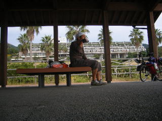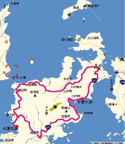 | 部屋で昨晩買っておいた「いなり寿司」の朝食を済ませてから 7:30 ホテルチェックアウト、出発 今日は一日平戸島を走る事に決めていた。日程的にも十分余裕はある。地図を眺めると意外と 島は大きい。南北で45q程あるので、一周とすると100qは越すだろう。それに山道も多そうだ。 そこで北半分を回る事にしてホテルを出発する。ただ、このホテルにもう一泊するのもつまらない ので、出来れば何処か快適な浜辺でキャンプをしようと思っている。 次は時計回りで行くか、反時計回りかで迷ったが結局時計回りを選択。根拠はない。大体の選択に 大した根拠などないのだ。これが失敗だった。 島の主要幹線道路、国道383号線に向かおうと町を出るといきなりの登りが始まる。2q程も続い たたろうか。登りつめて、左に平戸大橋や昨日走ってきた対岸の九十九島と呼ばれる海域を見なが ら進むと快適なダウンヒルとなる。下りきったところに広い砂浜が広がってくる。 浜に着いて、右手に建つホテルを見上げて、やっと思い出した。うかつと言えばうかつな話しだが このホテル「蘭風」には今年の4月にバス旅行で家人と泊った。中国雑技団のアトラクションを見な がら夕食を食べたものだ。前面の海水浴場は早朝散歩をした所だ。 この浜には水場がありチャンとと水も出る。トイレも水洗。キャンプ適地なのだが、如何せん、未だ 8時15分だ。いくら何でもこの時間に設営は早すぎる。逆周りしていればこのあたりは午後2〜3時 くらいになるはずで、迷わずキャンプできたのにと悔しい思いをする。しかし未だ先にいくらでも適地は あるだろうと思い直し、ゆっくりと「お茶」にして、眼前の景色を見ながら、思い出に浸ってみる。 40分位のんびりしてから出発。北風が強くウィンドブレイカーを着込む。このあたりの海岸線を走ると 風に逆らって平戸海峡に向けて潮が満ちていくのが、その流れだけではなく、ザザザという音でも はっきりとわかる程だ。相当水位差が激しいとみえる。 「川内(ここでは、普通にカワウチと読む)」の町で昼食用にパンを3ケ購入。 しばらく海岸から離れて山道を走ると、右手に「宝亀教会(ほうききょうかい)」に至る細い道が現われ る。本当にこの道で良いのかなと思いながら登りつめると、赤レンガに白の漆喰のコンントラストが眩し い教会が見えてくる。若い娘なら「かわいい!」と声を上げそうな教会だ。平戸で一番古い教会だそう で、ヒトケのない内部に入ってみると、中もやっぱり「かわいい」。 「柵」がありそれより中には入れなかったが、ここが教会としても苦慮した所なのだろう。一応「平戸市」 としても観光名所としているので協力しないわけにもいかなだろうし、信者の祈りを邪魔してもいけない し、さらに心無い観光客に荒らされてもたまらないだろう。そこで「柵」ということになったのだろうが、 いわゆる「観光客・参拝者問題」はそもそもその区別がつかない性質のものなので悩ましいところだ。 (後でわかった事だが、若き友人のT君夫妻がここで結婚式を挙げていた。) 300円(これが財布のなかの100円玉すべて)を献金して、先へ急ぐ。 相変わらず山中の道を5q程走ると(峠もいくつかあり、歩く)、平戸島を南北に分ける「くびれ」の町へ 下り着く。ここを「紐差」と書き(ひもさし)と読む。ここには「紐差教会」がある。国道R383からもよく見 える高台にあり、宝亀教会と比べるとはるかに大きい。 教会のすぐ下に自転車を停めて歩いて登る。真っ白で高々とどっしりしており、このあたりの中心の教会 かと思われる。やはり無人だったが、同じように「柵」が設けられていた。 玄関に張られた各種張り紙を見ていると、(宝亀教会でも同様だったが)この教会が「学校」「集会所」 「公民館」的な役割を果たしていることが良くわかる。日常的に教区の信者の「お世話」をしており、その 「魂」に責任を負っている姿が読み取れる。多分、住民にとっては「教区」の方が「行政区」より身近なの だろう。 500円(まさか10円というわけにもいかず)を献金してのち、境内?のベンチでのんびりと休み、町中で 昼食用に牛乳を買い込んでから、島を北西方向に横断にかかる。(県道60号線) 10:30 教会発 11:30 山道を走って県道19号線へのT字路に出る。 そろそろ昼時なので、丁度そこで農作業をしていた男に、この近くに気持ちの良い浜辺がないかと聞く と、どこから来たのかとか何日目かなどといろいろと逆に質問された後にやっと、 南に下ると「人津久の浜(ひとつくのはま)」や「根獅子の浜(ねしこのはま)」などきれいな浜辺があること を教えてくれた。 南へ下ると、またその道を登ってここまで戻り、平戸方向へ進む事になるのでどうしようと思ったが、 せっかく教えてくれた人が目の前に居り、それとは逆方向に行くのもいかがなものかとと考えて、南へ 坂を下る。確かに今は快適な走りなのだが、戻りの登りを思うとそれに浸ってばかりはいられない心境 なの