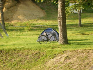 夕食、お茶の後、公園を散策し7時半にはテントにもぐりこむ。ラジオを聞いたり、娘にメールを送ったりする。