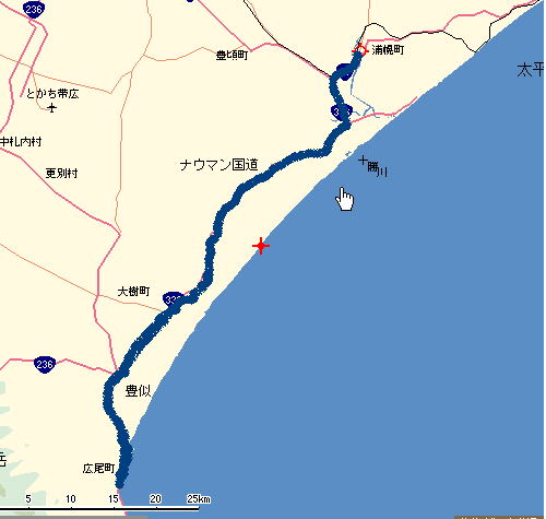 浦幌(ウラホロ)まで58q、この辺りのR336は通称「ナウマン国道」という