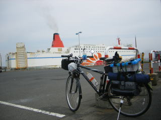 切符を買う等手続きが済んでも出航まで4時間以上あるので近くのマリーナで音楽を聞きながら寝転んでいると、リアキャリアーの付け根のビスが片方飛んでいるのが見つかった。早速、大洗の町に戻りGSの従業員に自転車屋の所在を聞き(在って良かった)ビスをねじ込んでもらった。無料でやってくれた。感謝。それにつけても早期発見でラッキーだった。北海道を走っているときに荷崩れでもしたら大変な事になるところだった。