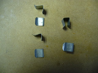 | ユニットは、下の写真のとおり、ガチャ玉やガチャックのようなクリップで止めて貼り合わされています。使用されているクリップの数は、一枚のユニットについて四つから八つとマチマチです。 クリップが四つしか使用されていない場合、隙間ができいることも見受けられます。 また、テンションが落ちているものがあったり、右の写真のとおり、割れてしまっていて用をなしていない場合もあります。 | |