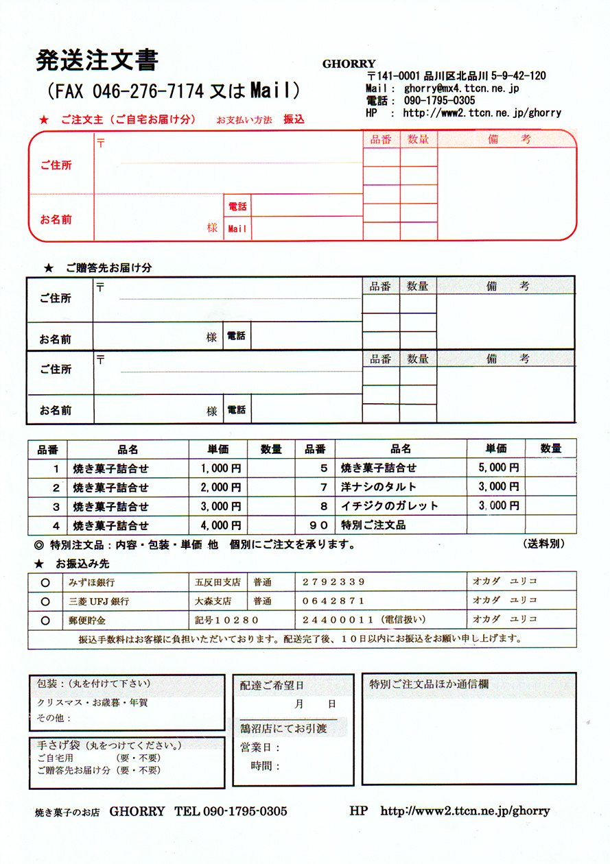 ご記入の上、写メ、Faxにてご連絡ください。