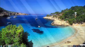 何かを全画面表示している間に時計の横の「デスクトップの表示」にカーソルを合わせるだけ。クリックはしない。