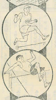稚拙ギリギリに味ある画だ。「ヒーロー運動靴」が様々なところで使われている様子が描かれている。運動着はともかく風呂敷包みにも「HERO」と書いてあるのが楽しい。そして靴底の模様(すべりどめ)をシッカリ描く気の遣いよう!