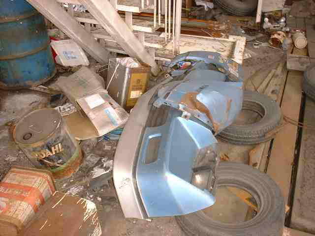 車両等を整備する場所 錆びたドラム缶、古タイヤ、バンパーetc・・・。 車に関する色々な用品が、ゴミに変わって放置されています。 |