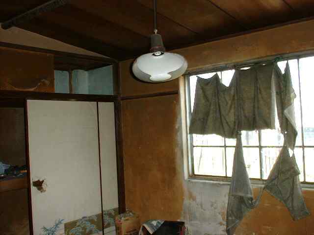 同じく カーテンがちぎれて揺れています。 電気傘だけが、綺麗な状態を保っています。 |