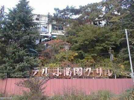 正面部全景です。 高さ3m位の、鉄の柵が侵入者を拒みます。 よく、小曲園グリルと呼称されますが。ここの「ホテル小曲園」内のレストランの名称のようです。泊り客以外の方のレストランの集客の必要性から、この位置のこの看板を設置したのだと思います。 物件事体の名称は「ホテル小曲園」です。 |
