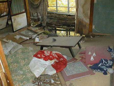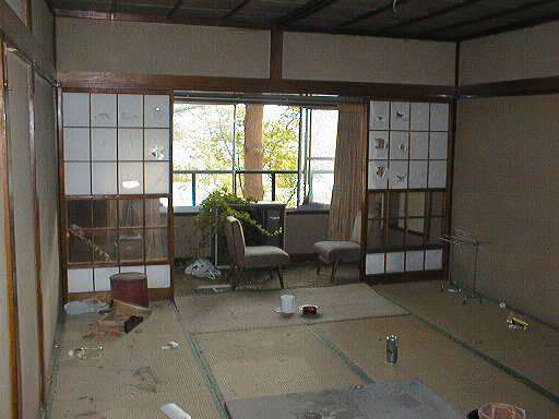 客室第2弾です。 床が腐って下の部屋と直通状態になっています。 この部屋には怖くて入りませんでした。 |