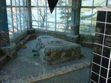 宝石風呂です。 ここのホテルの最大の売りです。 今では、ただの石風呂と化しています。 現役時代は結構素敵だったかもしれません。 河口湖が一望できます。 |